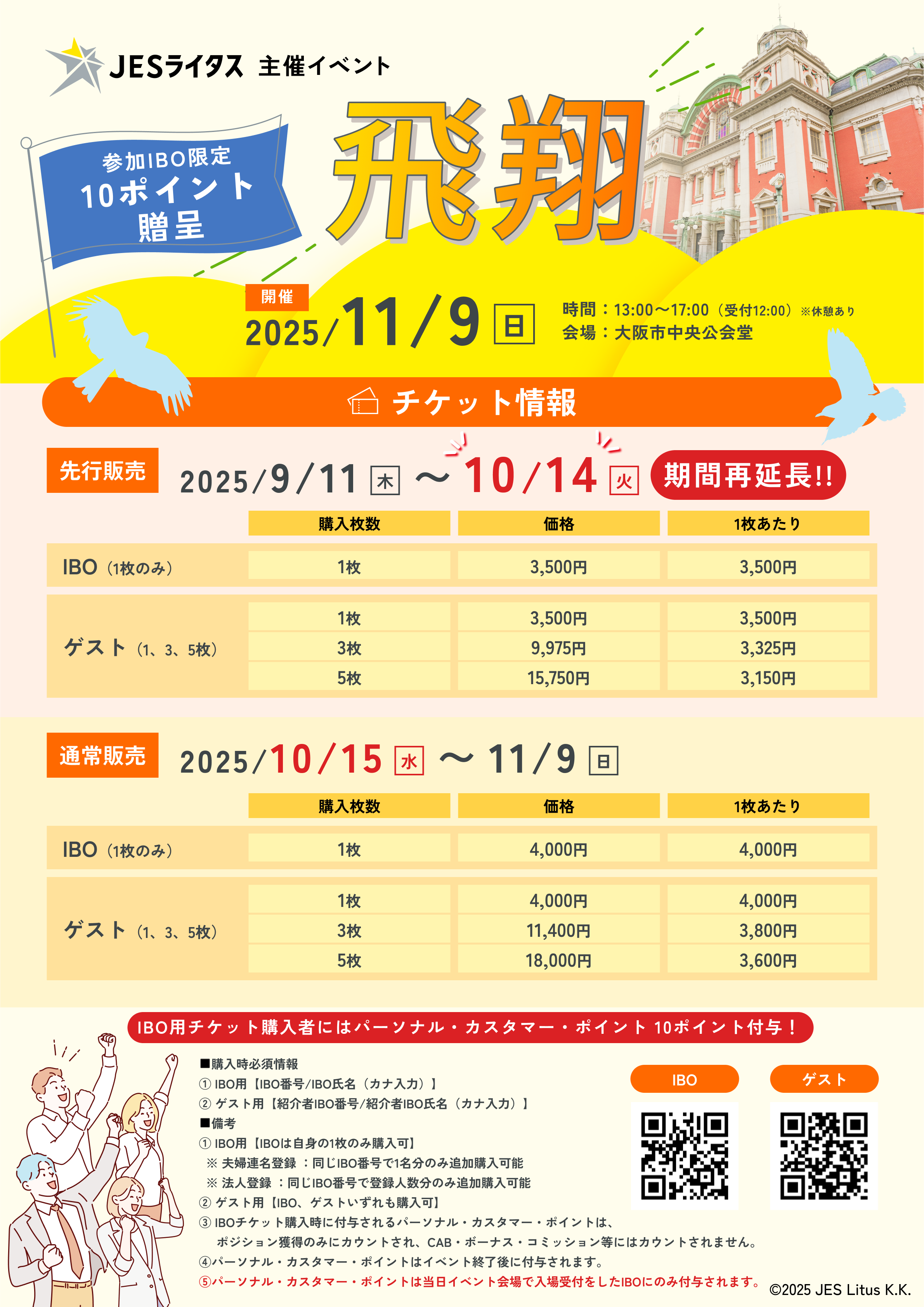 🔗 チケット購入特典: IBOチケット購入者にはパーソナル・カスタマー・ポイント 10ポイント付与!