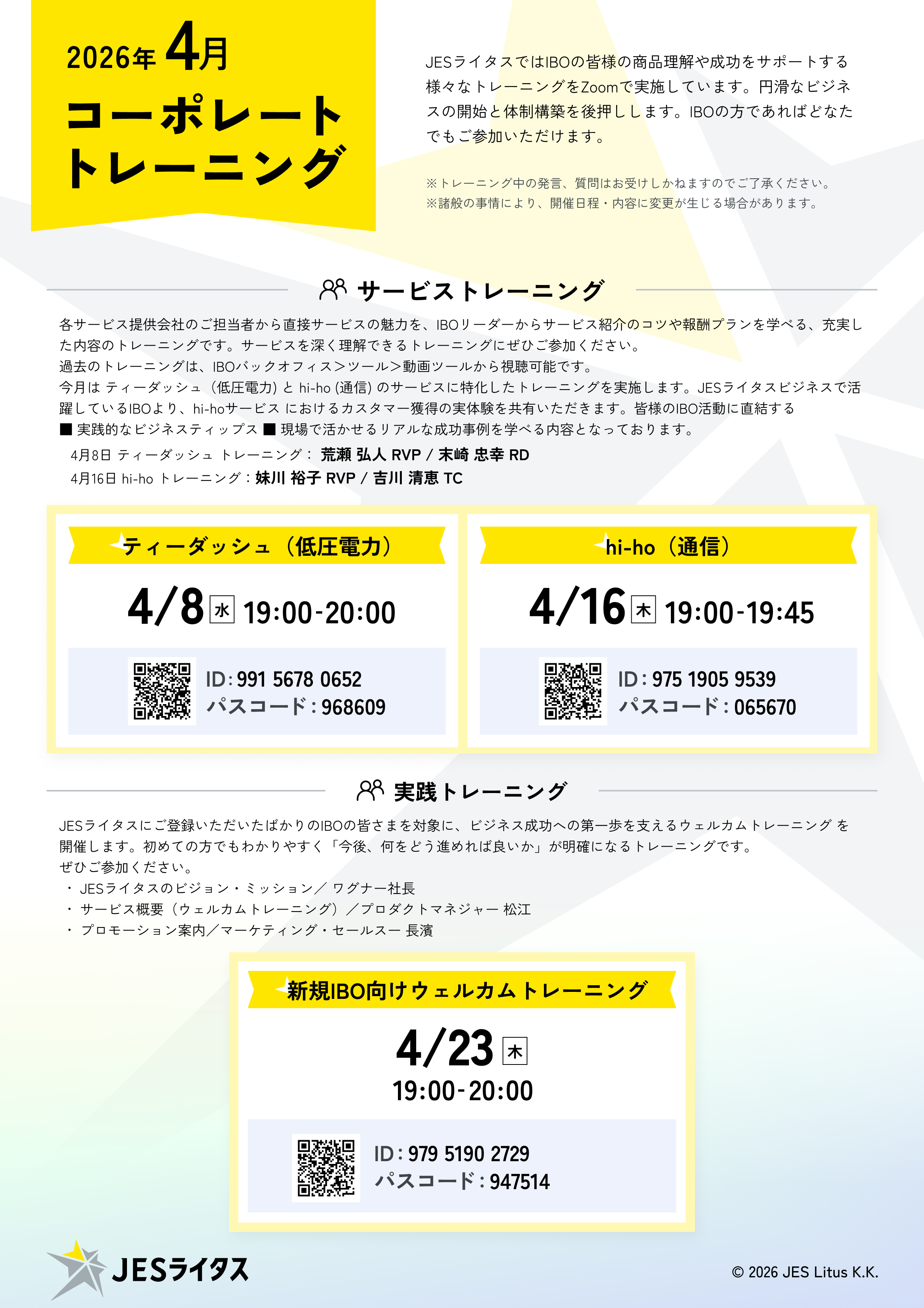 🚀 各サービスのコーポレートトレーニングでは、JESライタスを代表するトップIBOから、ここでしか聞けない実践ノウハウを直接学べます!