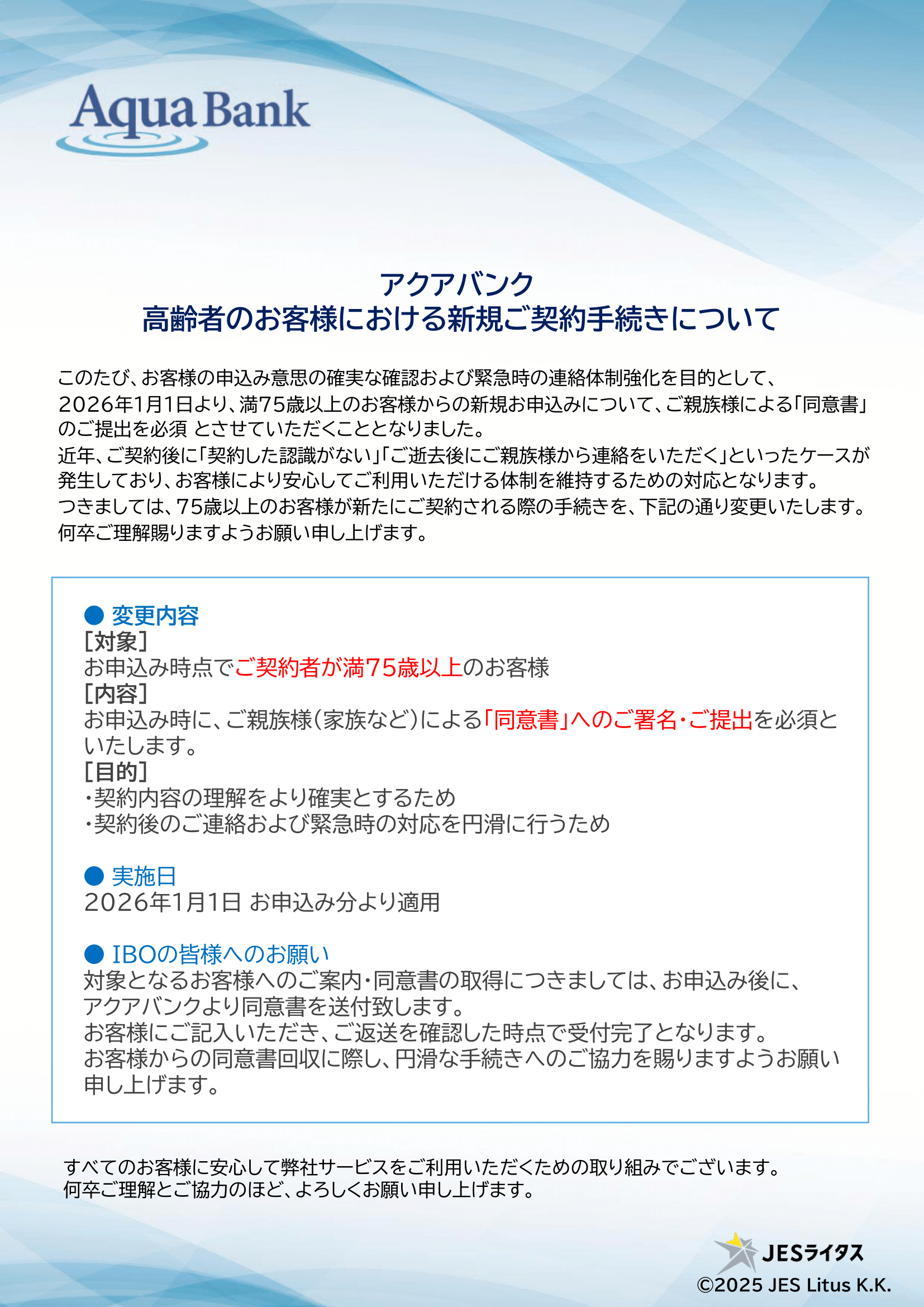 アクアバンク 高齢者のお客様における新規ご契約手続きについて