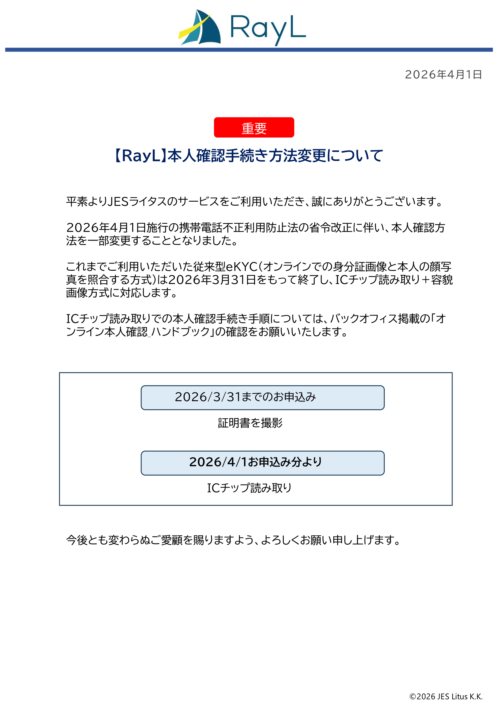 【RayL】本人確認手続き方法変更について