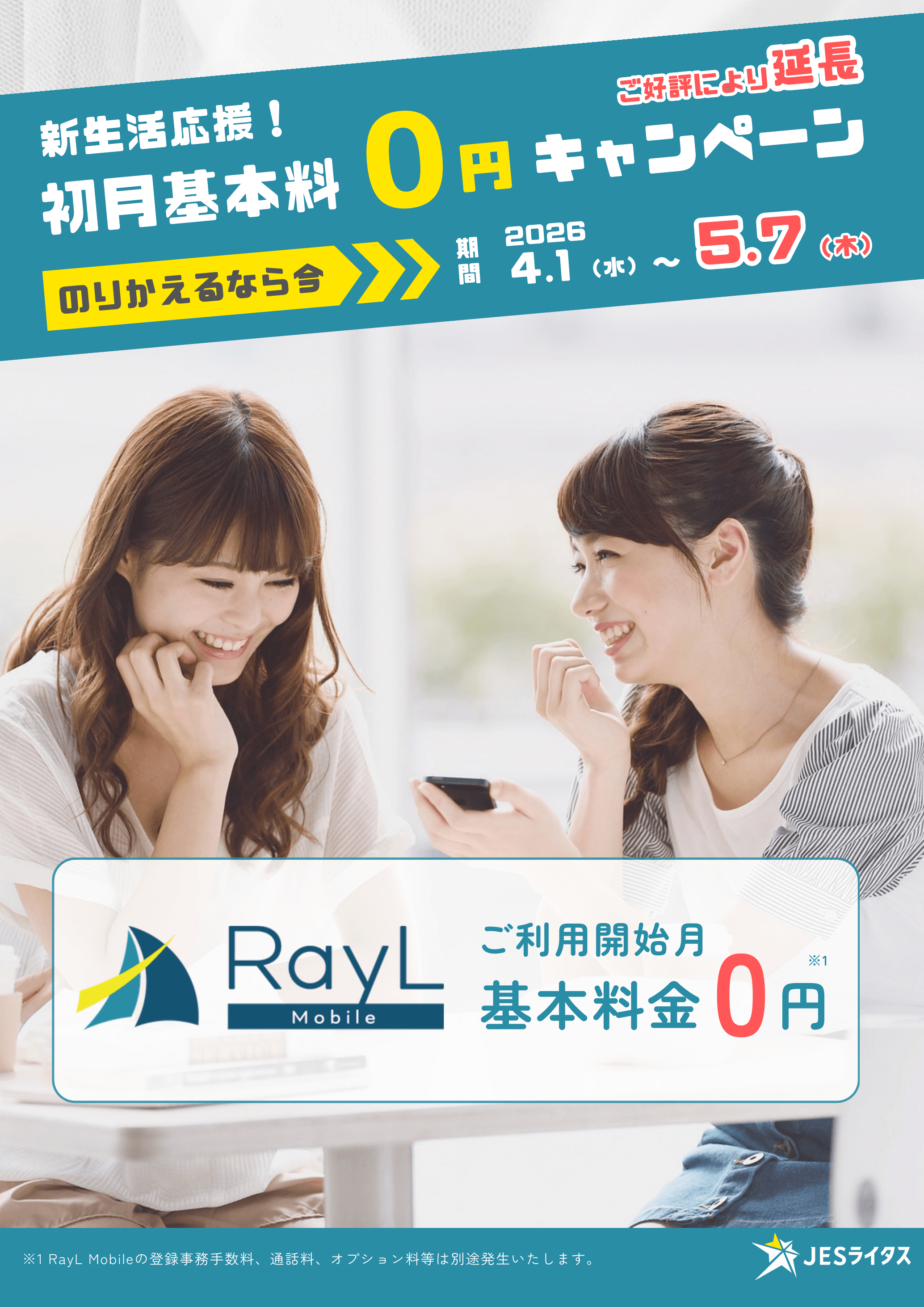 RayL Mobile 初月基本料 0円キャンペーン《期間延長》のお知らせ!